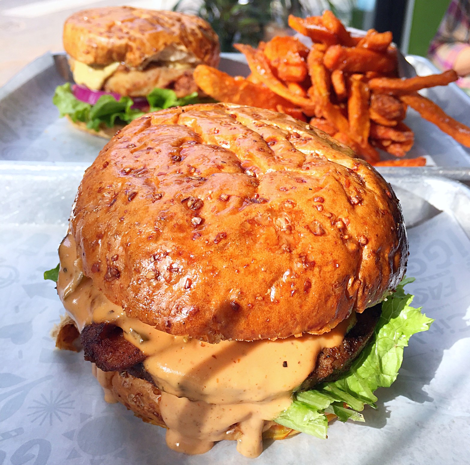We stopped by to check out this spot and were shocked by the crowds at lunchtime. With limited seating, your best option during lunchtime might be for take out. Try Nicole’s favorite salad the Udon Noodle with spicy glazed chick’n, sprouts, arugula, carrot, cabbage, daikon, scallions, peanuts, and Chinese black bean dressing. We chose to dig into the Ziggy Burger (named after the late David “Ziggy Stardust” Bowie) with an organic smoked tempeh patty and special sauce. And tried our the Crispy HipCity Ranch made with battered chick’n (available buffalo style), lettuce, tomato, onion, pickle, and. peppercorn ranch.