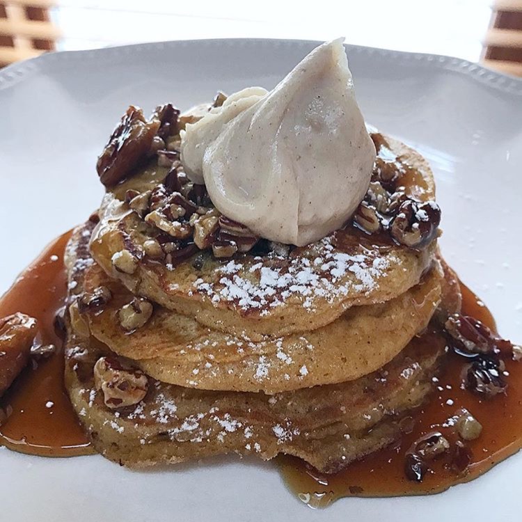 Pumpkin is one of the most popular fall ingredients, and its so versatile from soup to pie to pancakes. The batter for these pancakes comes together easily- just whisk the dry ingredients (including flour and warm spices of cinnamon, nutmeg, ginger, and cloves), then fold them into the wet mixture of pumpkin, milk, butter, and eggs. If you’re looking for a recipe hack we also love the Trader Joe’s pumpkin pancake mix and thier pecan pie sauce!