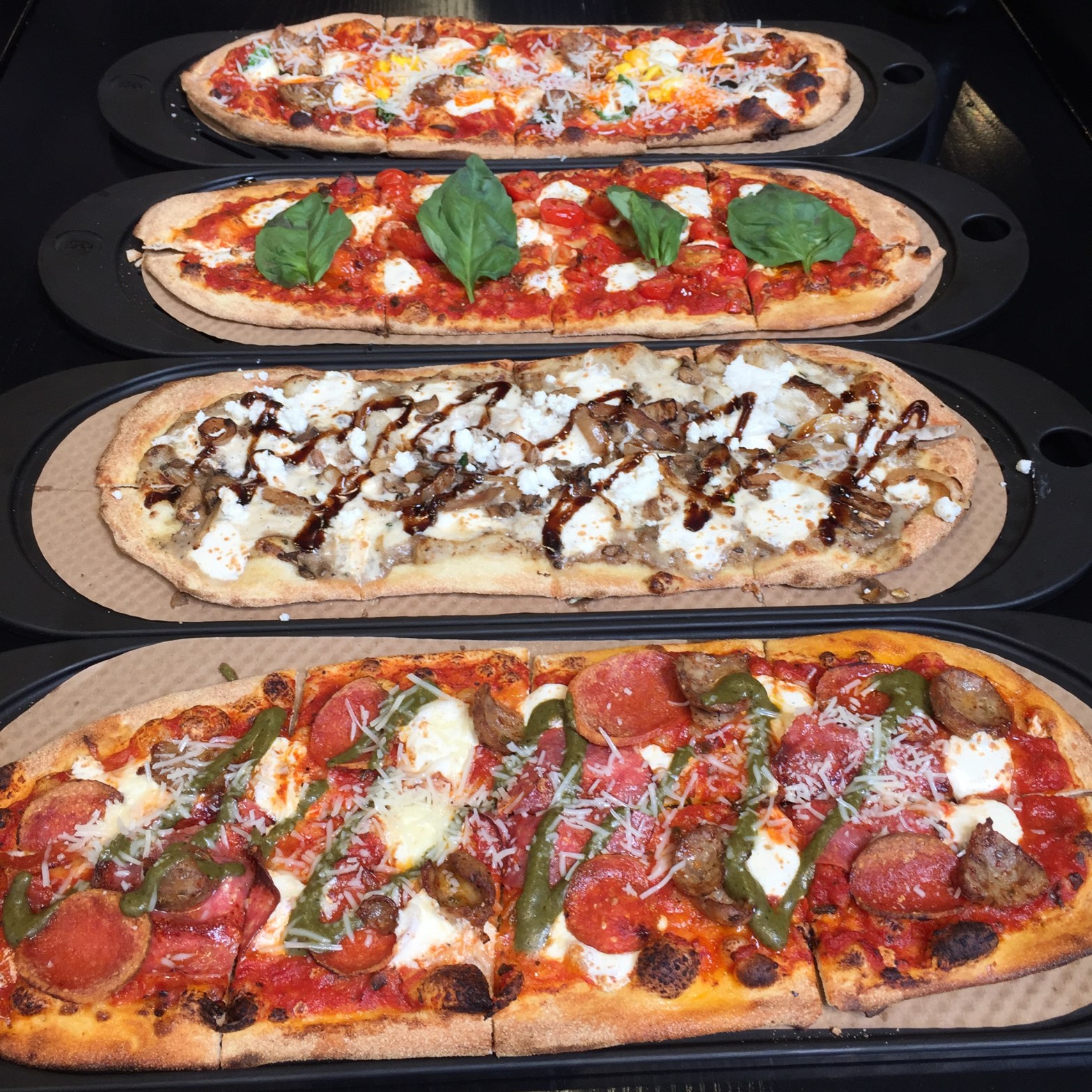 - Moonstruck with mushroom truffle, garlic ricotta, mozzarella, mushroom, grilled onion, goat cheese, fig balsamic